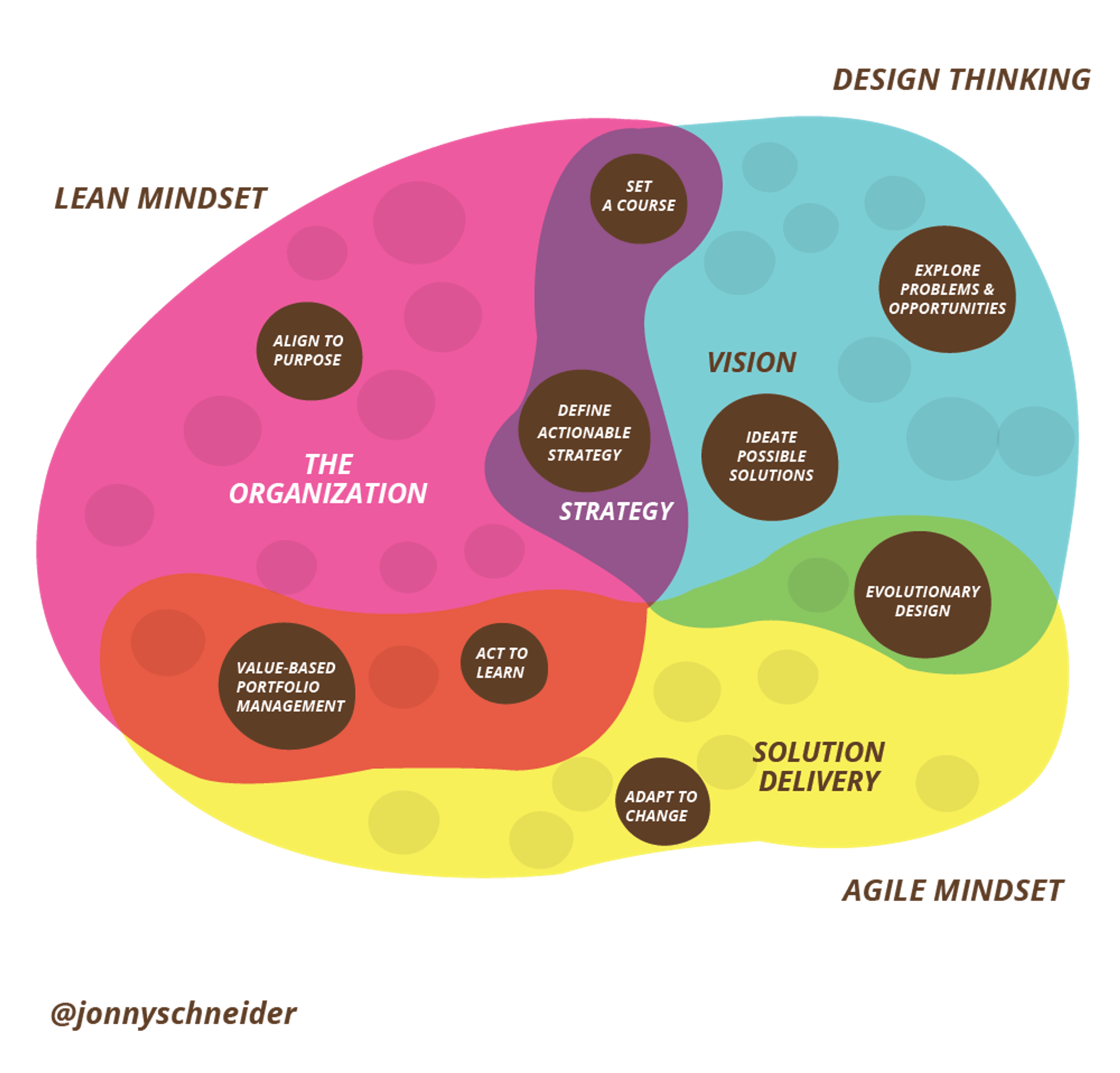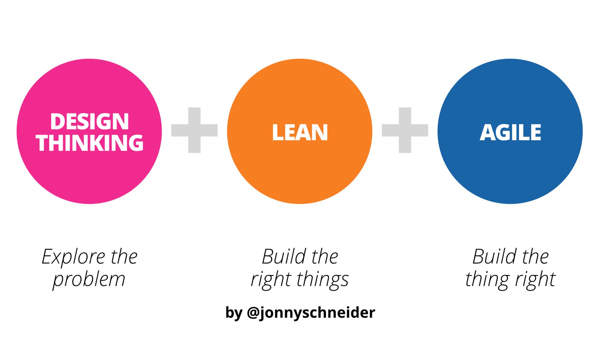 Design Thinking is how we explore and solve problems; Lean is our framework for testing our beliefs and learning our way to the right outcomes; and Agile is how we adapt to changing conditions with software.